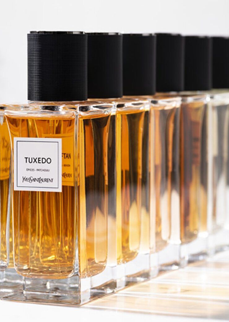 Un ensemble comprenant une sélection de parfums emblématiques : Lavallière, Tuxedo, Muse, Chemisier et Cuir